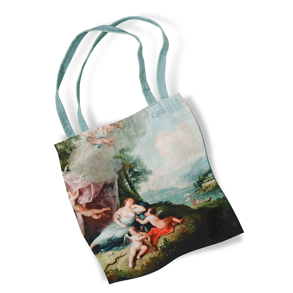 A pure cotton shopping bag featuring a painting by Francesco Zuccarelli in the hall dedicated to the Tuscan painter at Borromeo Palace on Isola Bella.